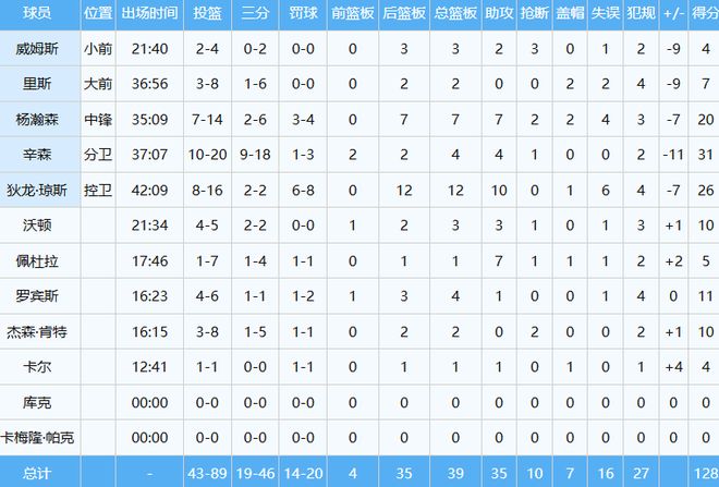 加时赛阶段,混音队集体进攻断电,仅靠杨瀚森罚球得到1分,最终128-135不敌对手。