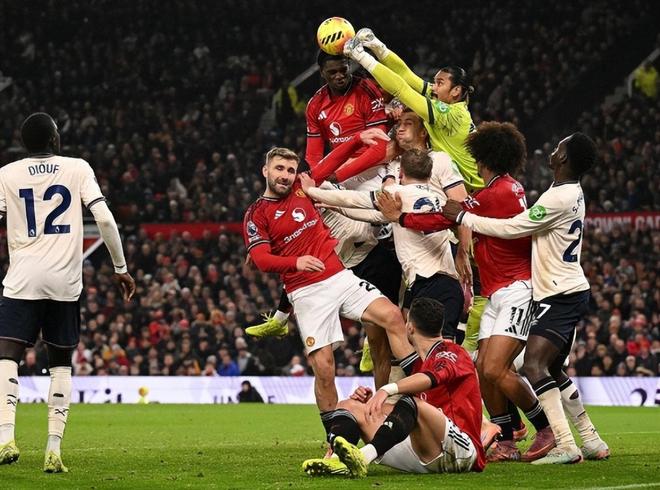 开场之后第6分钟,万-比萨卡右路高速前插倒三角回敲,马特乌斯迎球直接推射,卡塞米罗禁区内精准预判提前滑铲完成关键封堵;第24分钟,B费战术角球回敲,姆伯莫弧线球兜射,阿雷奥拉飞身单手救险。第28分钟,迪亚洛右侧肋部加速强行下底横传,齐尔克泽撞射被门线解围,库尼亚倒钩被挡,B费凌空二踢脚击中立柱!第45分钟,马兹拉维禁区内争夺球权踩到了绍切克,后者很实在的没有倒地,曼联稍显幸运的逃过点球判罚。